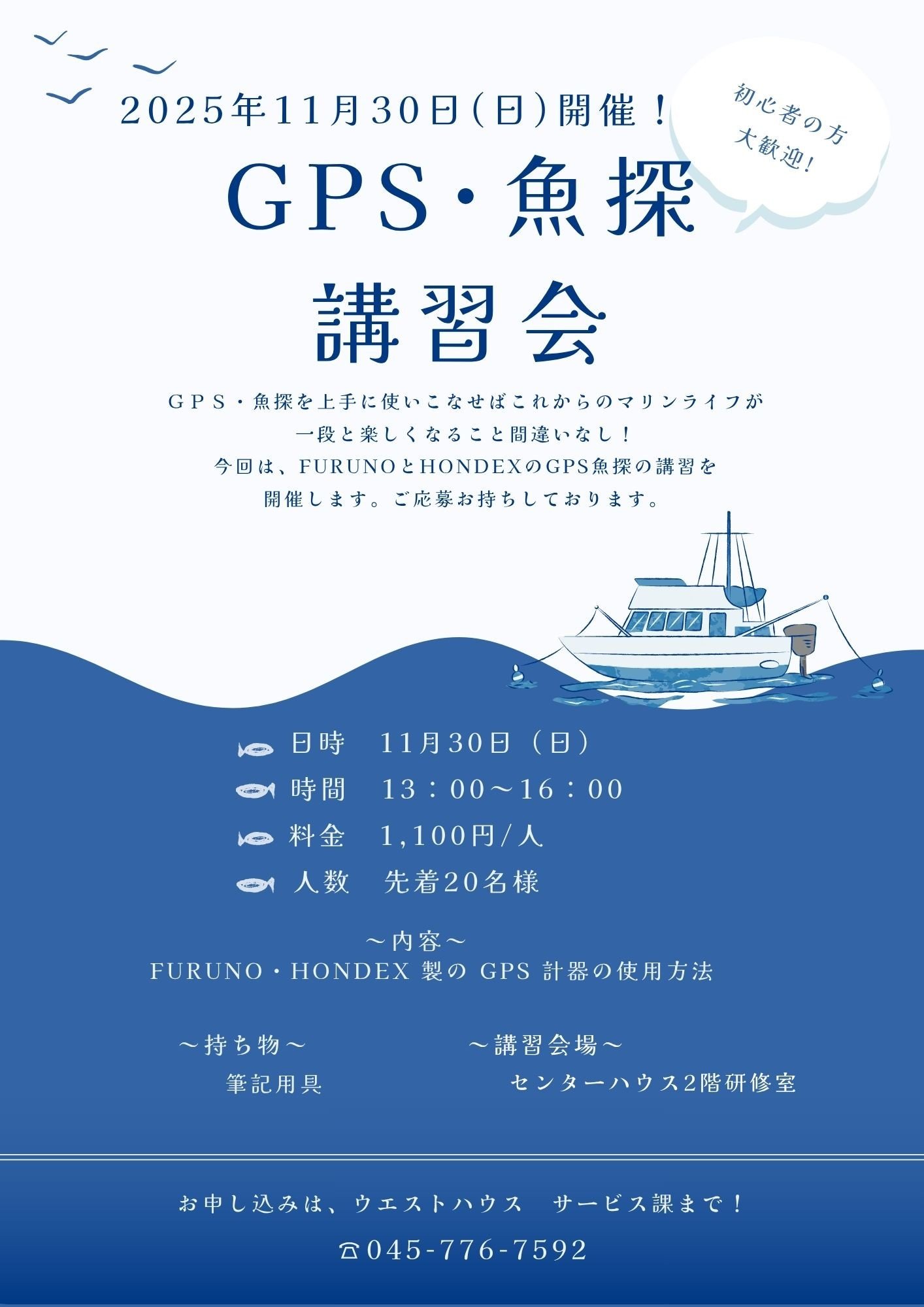 GPSプロッター魚探の基礎から応用までをしっかり聞ける講習会を実施します。