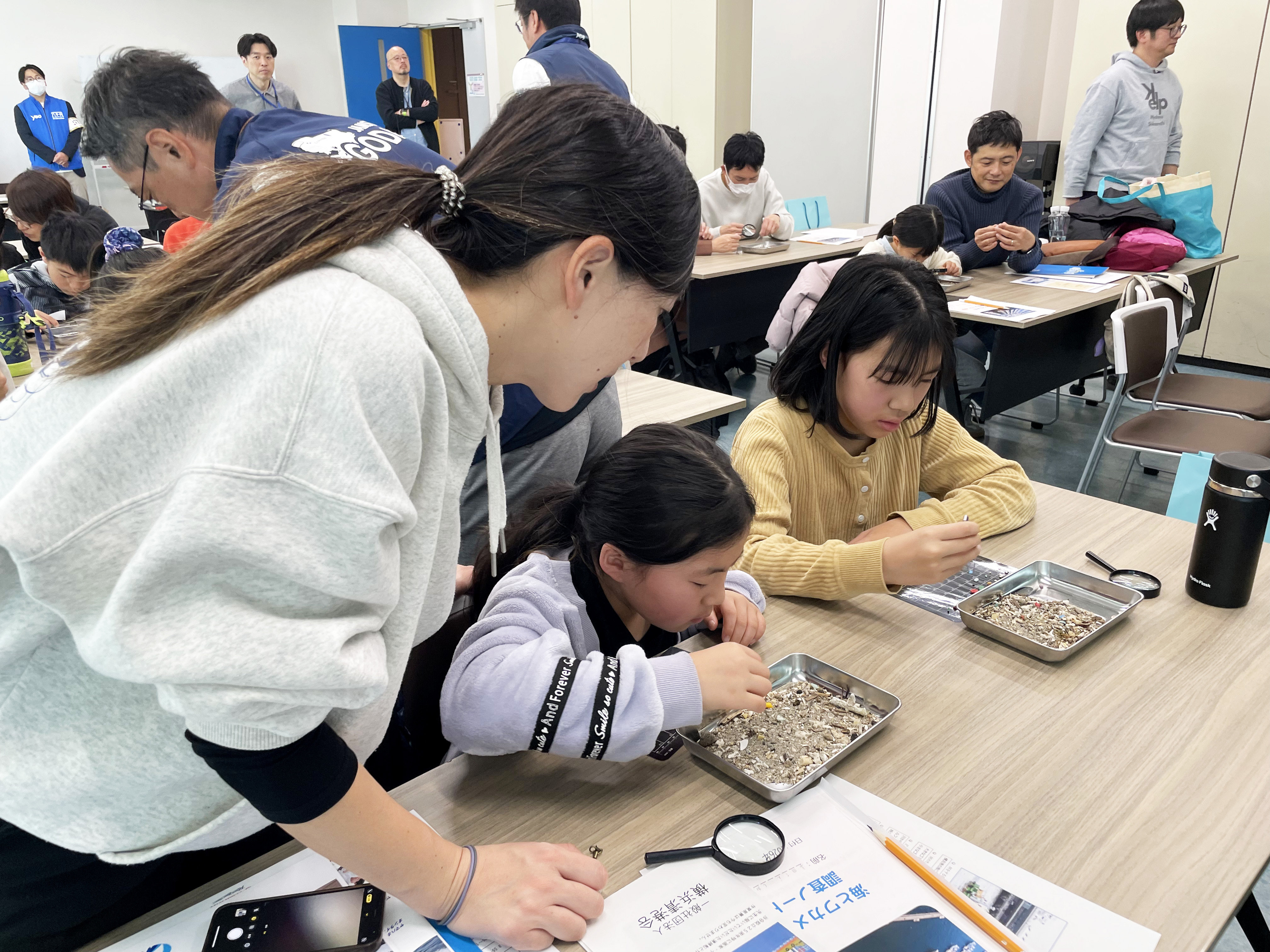 【海洋プラスチックごみの抽出を体験】 【ワカメの種付け体験】