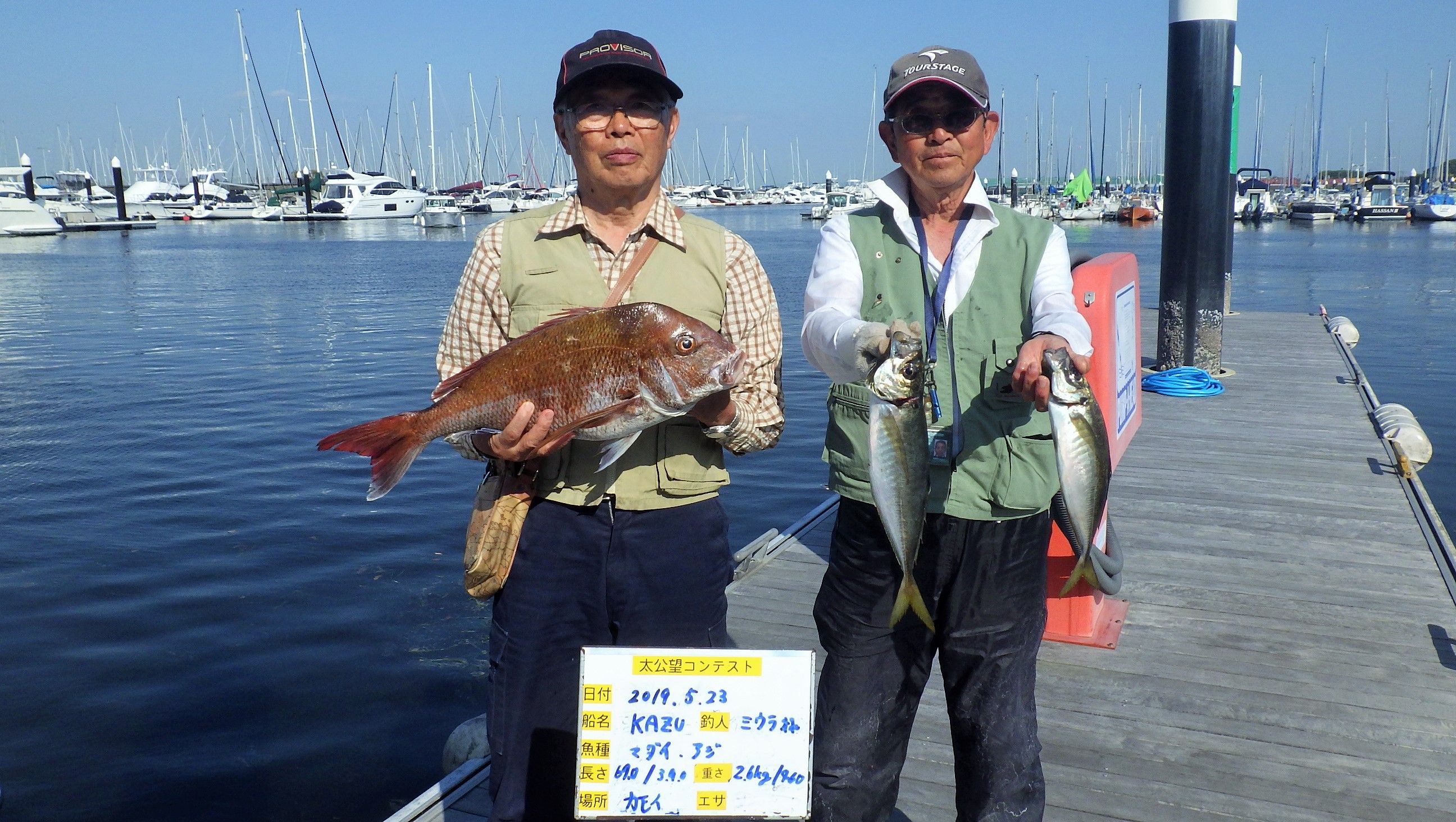 鴨居沖で、最後にやっと釣れたとのことですが、立派なマダイとアジのコンビですね!