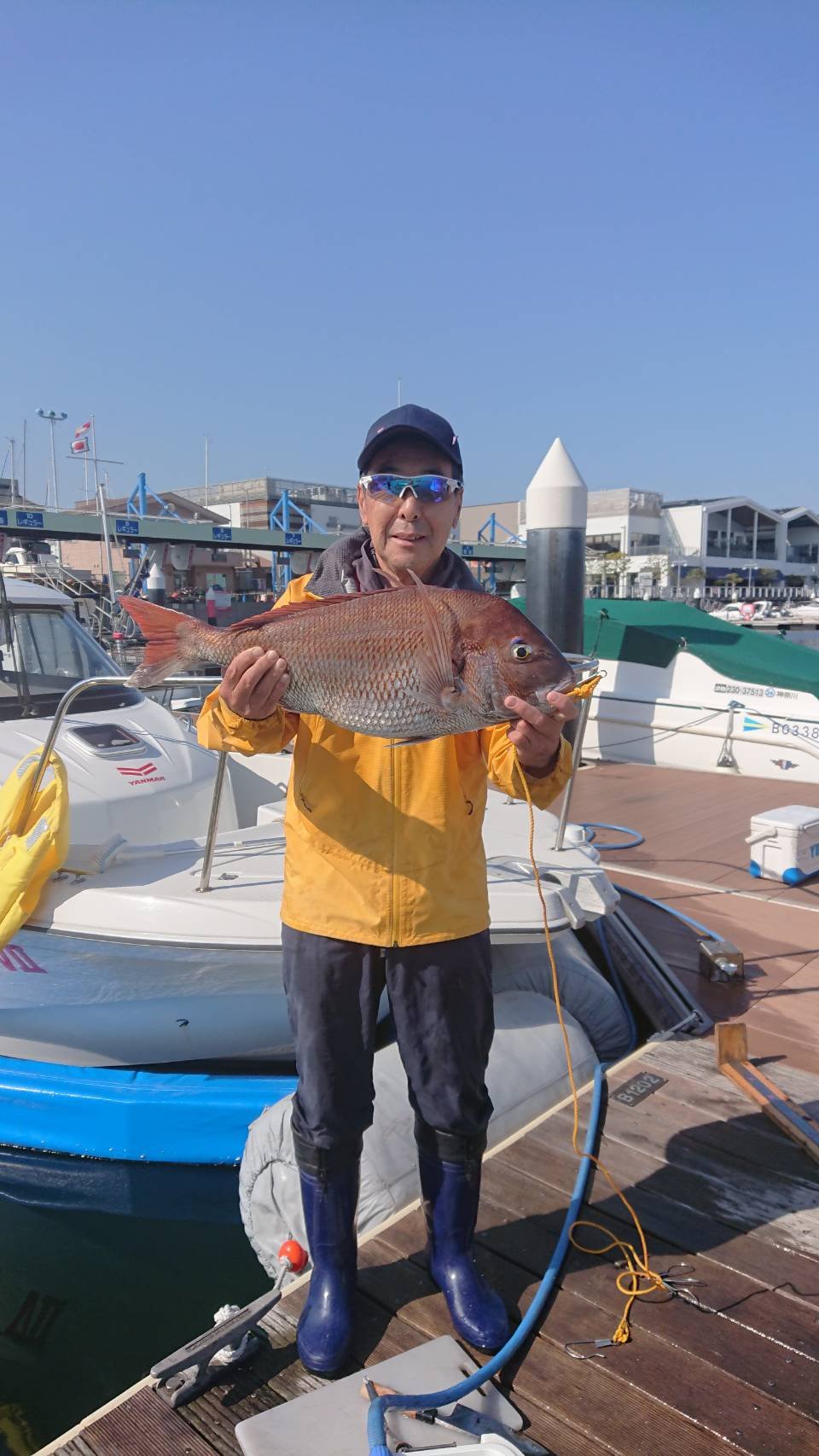 観音崎より南でで釣れると判断され、見事に大物のマダイを釣り上げることに成功です!!