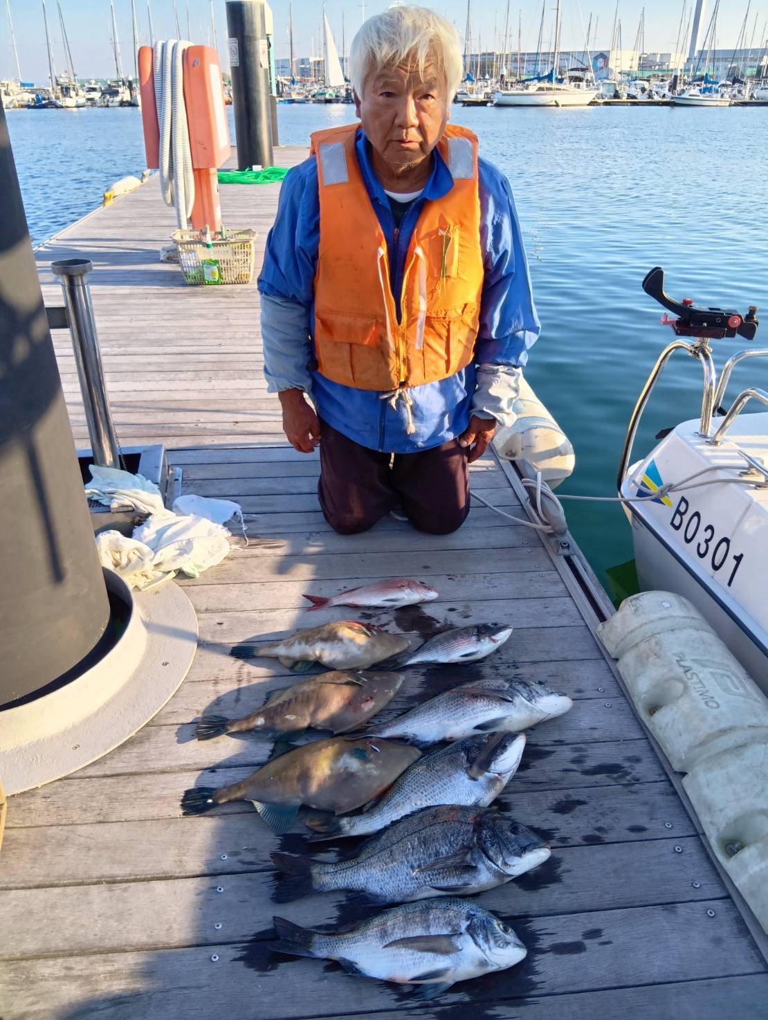 今回、エントリーはウマヅラハギですが、写真の通り色々な種類の魚の釣果があり、オーナー様より「陸に上げるとみんな魚が黒くなるとの事」(笑)