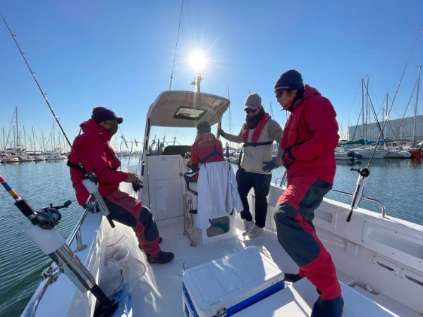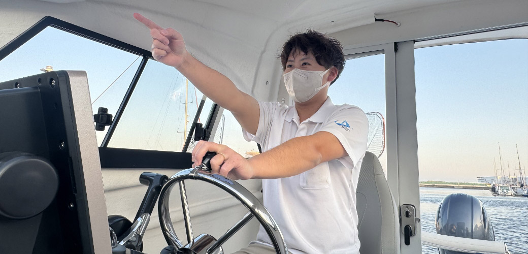 入社直後から先輩社員が座学、実技ともに全力でサポートしますので、未経験者でも大丈夫。免許取得後は、業務や社内スキルアップ研修、休日の社有艇利用補助制度を通じて、仕事とプライベートの両面で操船や海の楽しむスキルが自然と身につきます。